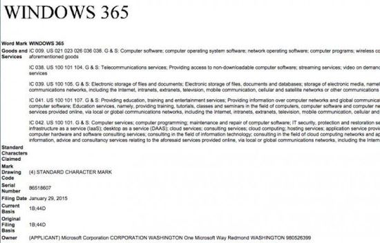 根据报道,微软最近已经申请了“Windows 365”的商标使用权,这为Windows 365又添了几分真实性。虽然这个商标可能只是一个防御性商标,来确保其它公司不会得到或使用此商标。目前微软最新的操作系统 Windows 10 在发布后第一年内免费向 Windows 7 和 Windows 8.1 用户提供,如此看来Windows 365 近期可能不会出现。